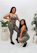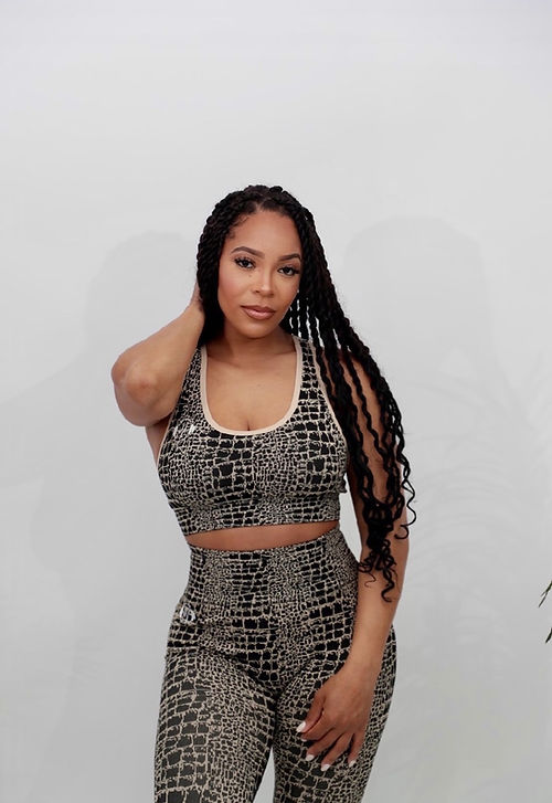 This set is surely a statement piece. The stretchy, thick material is form fitting, the compression high waist band sucks you in and gives you the hourglass illusion. This set is squatproof and perfect for the gym but also cute enough to wear around town. All eyes will be on you in this set. Removable bra pads.