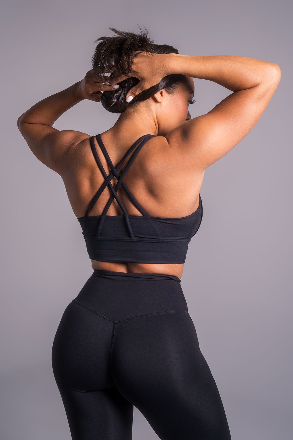 This superior quality sports bra is part of the skin collection, the softest collection to date. the lined detailing makes this bra stand out from the traditional sports bra. Just like the other bras in the skin collection, this will be the most comfortable sports bra you own. removable bra pads.