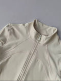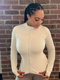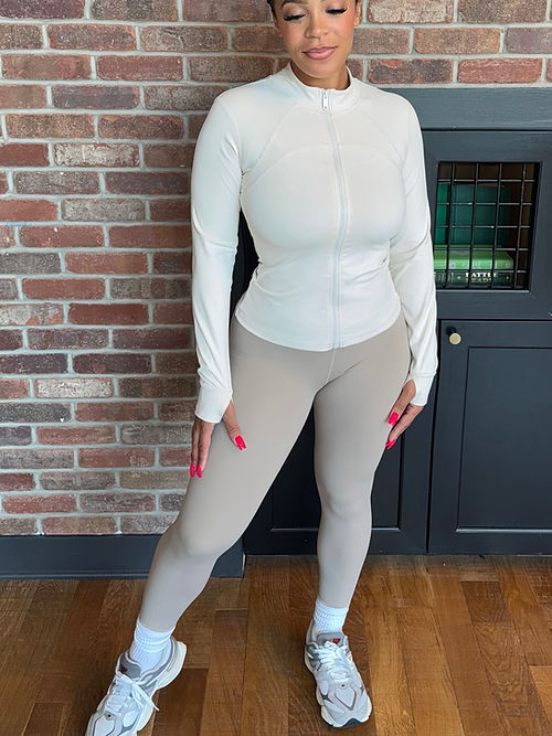 This light weight, full zip up will hug you in all the right places. Equipped with thumb holes and detailed piping, this jacket is perfect for the gym or as a cute top. Material is super stretchy, moisture-wicking and buttery soft.